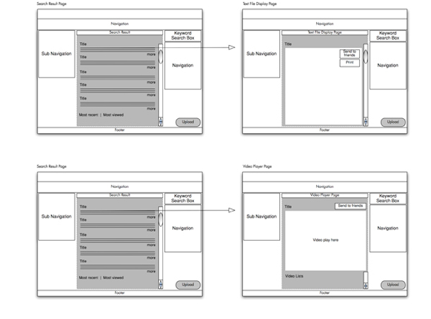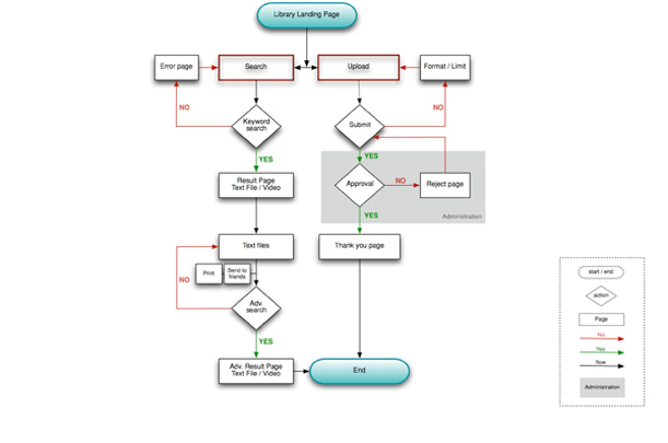 Joe Torre Foundation Site (Library Page) / Flowchart, Wireframes