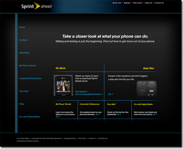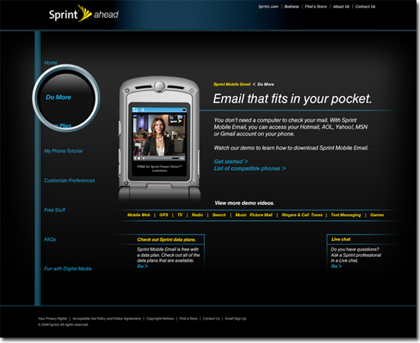 + iVillage.com + Michelin + Snickers + Sprint 2007 Holiday I + Sprint 2007 Holiday II + Sprint 2007 Holiday III + DisneyWorld.com + Sprint Ahead + Sprint DataHub + ESPN.com + Sprint 2008 Q1 Catalog I + Sprint 2008 Q1 Catalog II + Sprint Sweepstake Game + Sprint Switcher + Spatiq + Hotels.com + Visit Britain + Visit Britain Artists + Embassador.com + Majestic Steel + Visit Wales