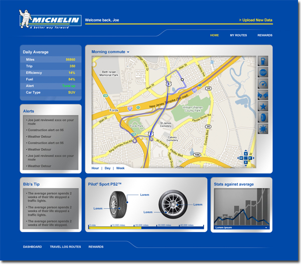 Michelin Tire owners would have access to all the information described above. And much more, including ravel logs indicating the roads driven and an interactive Web-based travel planner.